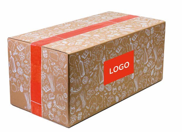 La struttura del nostro packaging consente di poter personalizzare le varie confezioni con vostro logo. Per le scatole I Classici ed Enoteca può essere personalizzata la stampa della fascia a sigillo di garanzia; per i cesti il nastro adesivo in eco-carta potrà essere neutro in colore arancio e il vostro logo applicato con adesivo su entrambi i lati lunghi dell’imballo. Di seguito troverete un’immagine esemplificativa.