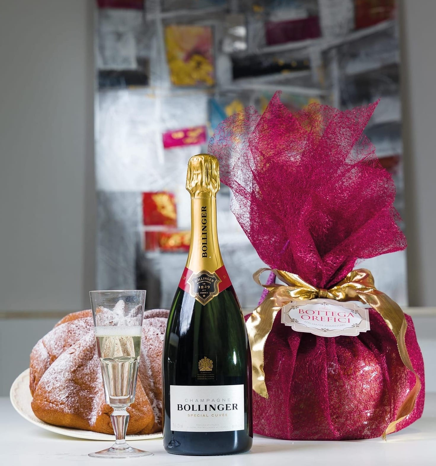 Abbinamento di altissimo livello tra il celebre Champagne Special Cuvée Bollinger e il Cuor di pandoro con crema mascarpone e frutti di bosco. Ideale per un regalo memorabile.
