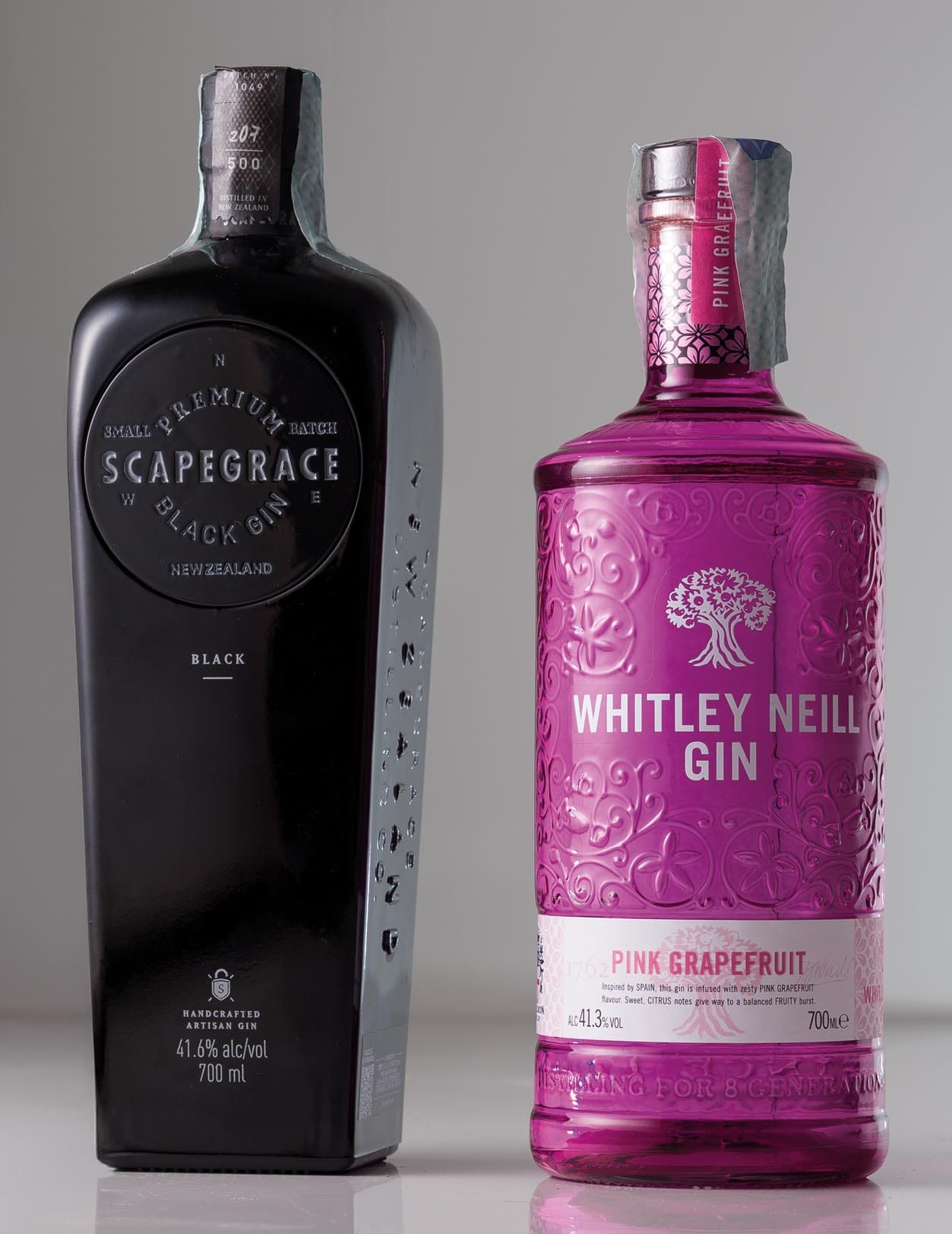 Duo di Gin per intenditori: Premium Black Gin Scapegrace Distilling Co. e Dry Gin al pompelmo rosa Whitley Neill.